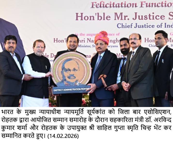 रोहतक रहा है मेरे लिए प्रेरणा स्थल :- सीजेआई न्यायमूर्ति श्री सूर्यकांत