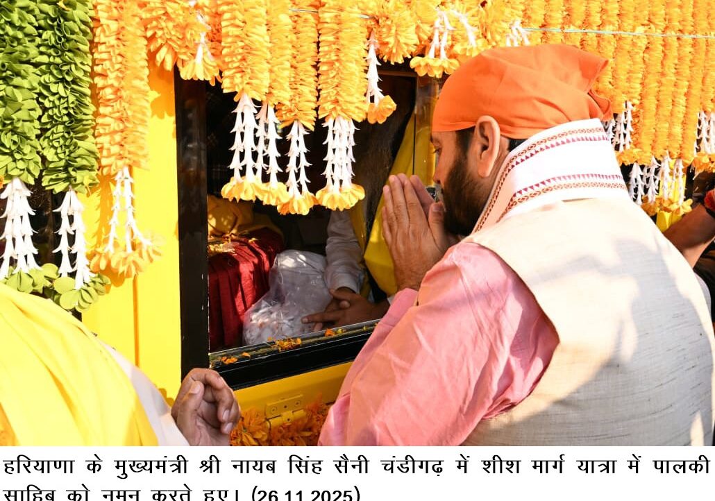 मुख्यमंत्री नायब सिंह सैनी ने श्री गुरु तेग बहादुर जी के बलिदान वर्ष को समर्पित शीश मार्ग यात्रा का चंडीगढ़ में किया स्वागत