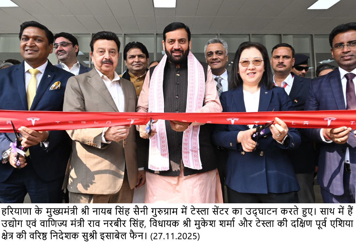 मुख्यमंत्री श्री नायब सिंह सैनी ने गुरुग्राम में टेस्ला इंडिया मोटर्स के देश के पहले ऑल इन वन केंद्र का किया उद्घाटन