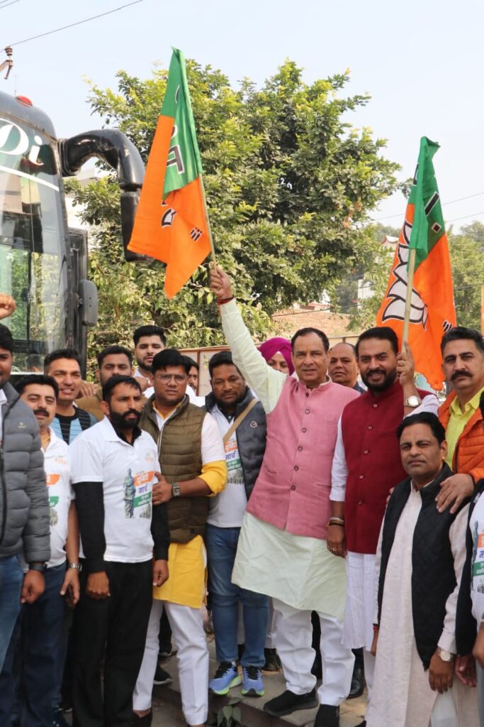 चंडीगढ़, 25 नवंबर। राष्ट्रीय एकता के प्रतीक सरदार वल्लभभाई पटेल की 150वीं जयंती के अवसर पर राष्ट्रीय स्तर पर भव्य यूनिटी मार्च कार्यक्रम का आयोजन किया जा रहा है। मंगलवार को भाजपा कार्यालय सोनीपत से भाजपा प्रदेश अध्यक्ष पंडित मोहन लाल बड़ौली ने गुजरात में होने वाली यूनिटी मार्च यात्रा के लिए युवा मोर्चा के प्रदेश अध्यक्ष योगेंद्र शर्मा के नेतृत्व में 58 सदस्य दल को झंडी दिखाकर रवाना किया। इस मौके पर युवा मोर्चा प्रदेश महामंत्री योगेश जठेडी, प्रदेश उपाध्यक्ष संदीप यादव,यात्रा के संयोजक जयदेव नौल्था, सह- संयोजक कुशल ठाकुर, सुनील कपूर, प्रीत जैलदार व सभी जिलों के जिला अध्यक्ष व कार्यकर्ता उपस्थित रहे।