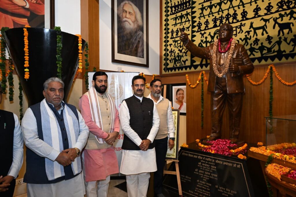 चंडीगढ़, 26 नवंबर – हरियाणा विधान सभा परिसर में बुधवार को संविधान दिवस मनाया गया। इस अवसर पर विधान सभा अध्यक्ष हरविन्द्र कल्याण और मुख्यमंत्री नायब सिंह सैनी समेत बड़ी संख्या में मंत्रियों और विधायकों ने यहां स्थापित डॉ. भीम राव अम्बेडकर की प्रतिमा पर पुष्पांजलि अर्पित की और संविधान की प्रति प्रतिबद्धता व्यक्त की।