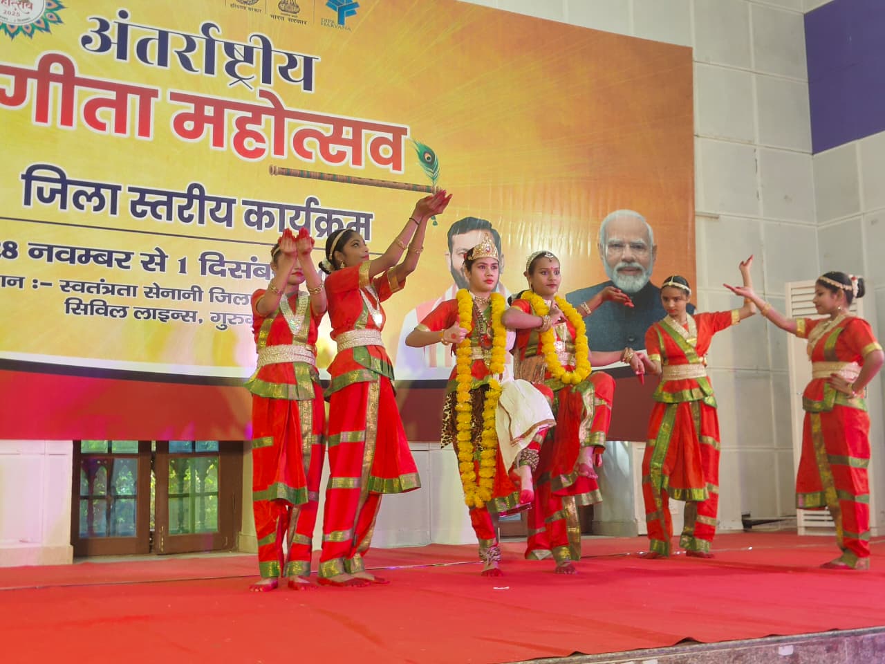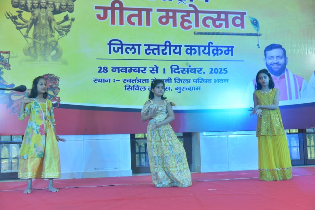 मंच पर बच्चों की कला और अभिव्यक्ति का चरम उस समय देखने को मिला जब मॉडल संस्कृति स्कूल सुशांत लोक के विद्यार्थियों ने सजीव हरियाणवी एकल नृत्य प्रस्तुत किया और राजीव गांधी हाई स्कूल द्वारा अंत में प्रस्तुत हरियाणवी समूह नृत्य ने माहौल को उल्लास और उमंग से भर दिया। इन सभी प्रस्तुतियों में जहाँ पारम्परिक लोक संस्कृति की झलक मिली, वहीं गीता के आध्यात्मिक संदेश और भारतीय संस्कृति के मूल्यों का समरस संगम भी स्पष्ट दिखाई दिया। दर्शकों ने सभी प्रस्तुतियों की मुक्त कंठ से सराहना की और छात्रों की प्रतिभा, अनुशासन तथा समर्पण को अत्यंत प्रेरणादायक बताया।