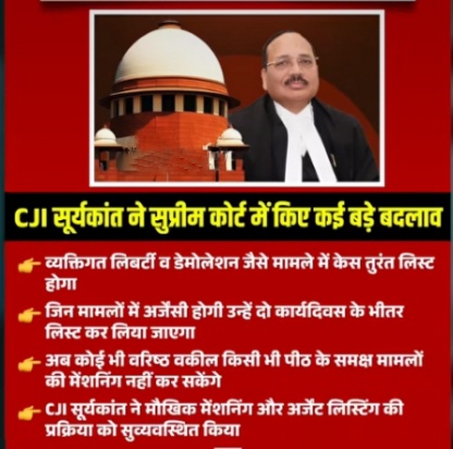 - अब कोई भी वकील सीधे CJI की बेंच के सामने मेंशनिंग नहीं करेगा।