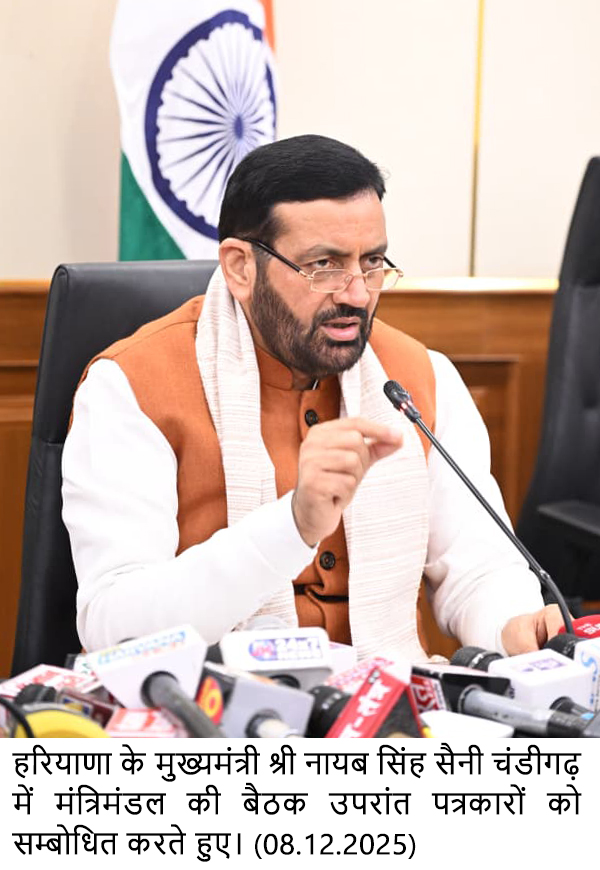चंडीगढ़, 8 दिसंबर – हरियाणा विधानसभा का शीतकालीन सत्र आगामी 18 दिसंबर से आयोजित किया जाएगा। यह जानकारी मुख्यमंत्री श्री नायब सिंह सैनी ने आज यहां मंत्रिमंडल की बैठक के बाद आयोजित प्रेस वार्ता के दौरान दी।