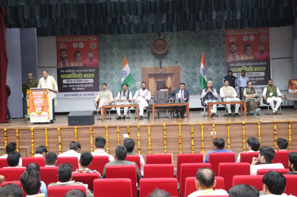 चौधरी रणबीर सिंह विश्वविद्यालय जींद में हर घर स्वदेशी अभियान को लेकर भाजयुमो की मॉक पार्लियामेंट का आयोजन