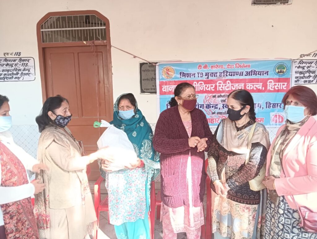 हिसार, 11 दिसम्बर 2025 – हिसार के वानप्रस्थ सीनियर सिटीजन क्लब ने आज शिव कॉलोनी धर्मशाला में झुग्गी-झोपड़ी क्षेत्र के 50 टी.बी. मरीजों को प्रोटीनयुक्त पौष्टिक आहार किट की 41वीं किस्त वितरित की। यह अभियान प्रधानमंत्री निक्षय मित्र योजना के अंतर्गत अगस्त 2022 से बिना रुके चल रहा है।