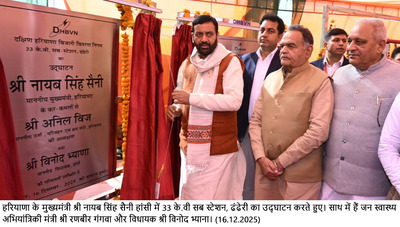 मुख्यमंत्री श्री नायब सिंह सैनी ने 77 करोड़ 30 लाख रुपए लागत की 3 विकास परियोजना का उद्घाटन एवं शिलान्यास किए हैं। इनमें 61 करोड़ 44 लाख रुपए लागत की बरवाला ब्रांच से हांसी शहर के लिए पानी प्रबंधन परियोजना का शिलान्यास, ढंढेरी गांव में 7 करोड़ 42 लाख रुपए नवनिर्मित 33 के. वी. बिजली सब स्टेशन व लोहारी राघो गांव में 8 करोड़ 44 लाख रुपए की लागत से बने इतनी ही क्षमता के बिजली सब स्टेशन का उद्घाटन शामिल हैं।