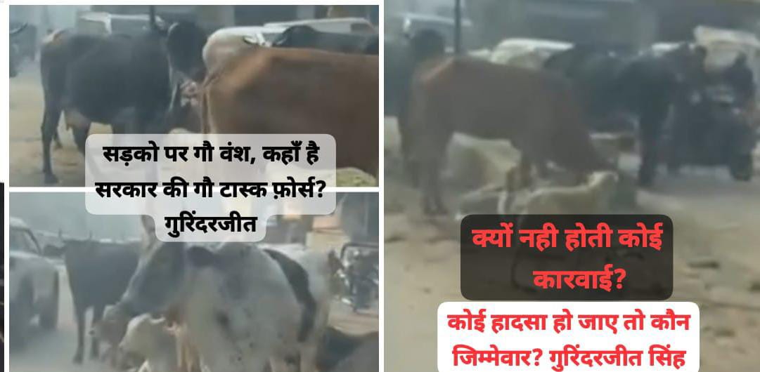 गुरुग्राम। गुरुग्राम के समाजसेवी इंजीनियर गुरिंदरजीत सिंह ने शहर में सड़कों पर खुलेआम घूम रहे आवारा गौवंश को लेकर प्रशासन और सरकार की कार्यप्रणाली पर गंभीर सवाल खड़े किए हैं। उन्होंने कहा कि आज गुरुग्राम की मुख्य सड़कों और रिहायशी कॉलोनियों में गौवंश का सड़कों पर घूमना आम हो गया है, जिससे न केवल यातायात बाधित हो रहा है बल्कि आम नागरिकों की जान भी खतरे में पड़ रही है।