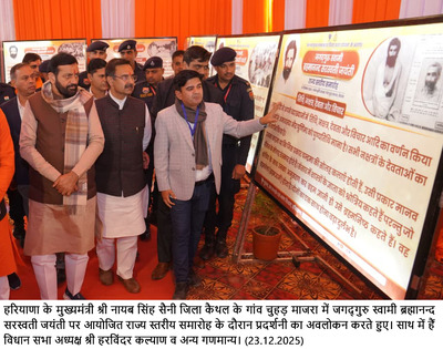 हरियाणा सरकार द्वारा गुरु ब्रह्मानंद जन्मस्थली गांव चुहड़ माजरा में आयोजित गुरु ब्रह्मानंद जयंती के राज्य स्तरीय समारोह में मुख्यमंत्री नायब सिंह सैनी ने की बतौर मुख्य अतिथि शिरकत