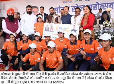-मुख्यमंत्री नायब सिंह सैनी ने सांसद खेल महोत्सव 2025 के समापन समारोह में विजेता खिलाडिय़ों को नकद राशि व पुरस्कार देकर किया सम्मानित