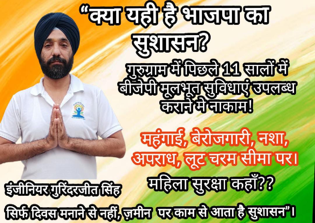 इंजीनियर गुरिंदरजीत सिंह ने कहा कि भाजपा को हरियाणा में सत्ता संभाले 11 साल हो चुके हैं और गुरुग्राम में ट्रिपल इंजन सरकार भी है, लेकिन ज़मीनी हालात बद से बदतर हैं।