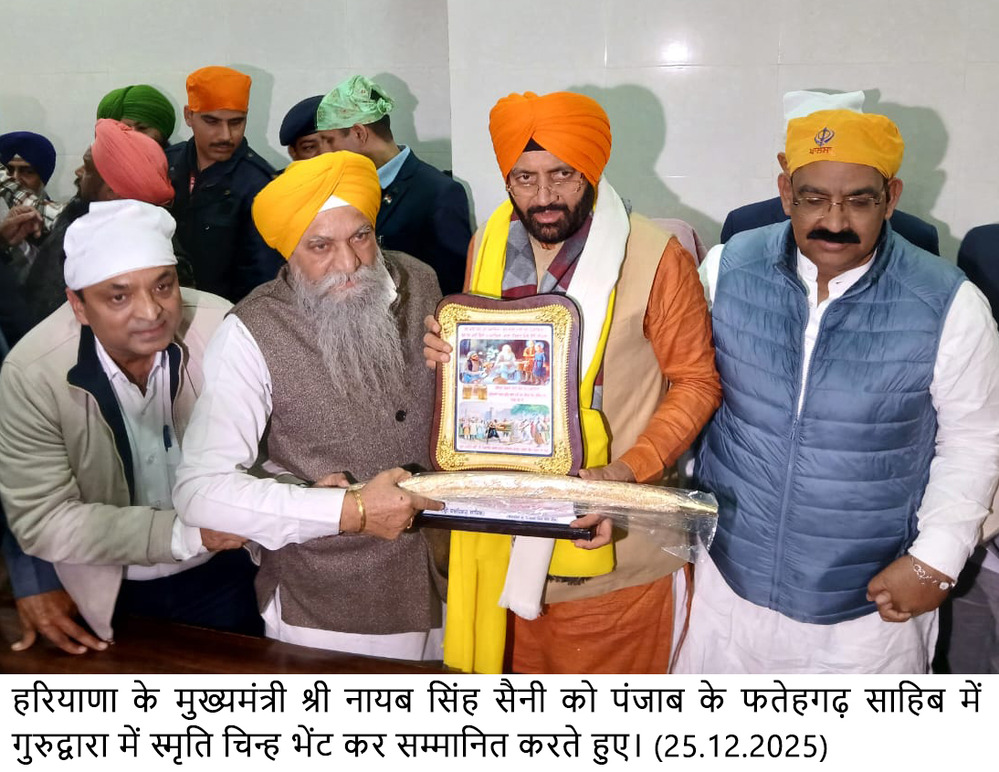 मुख्यमंत्री ने कहा कि बुधवार को देश के गृह मंत्री श्री अमित शाह ने पंचकूला में वीर बाल दिवस के अवसर पर साहिबजादों को नमन किया। हाल ही में हरियाणा प्रदेश में श्री गुरु तेग बहादुर जी के 350वें शहीदी वर्ष को भी बड़े स्तर पर मनाया गया। श्री गुरू तेग बहादुर जी के 350वें शहीदी दिवस के उपलक्ष्य में प्रदेश के विभिन्न स्थानों पर कार्यक्रम आयोजित किए गए, चार यात्राएं निकाली गईं, जिनका समापन कुरुक्षेत्र में हुआ। शहीदी समागम में प्रधानमंत्री श्री नरेन्द्र मोदी ने पहुंचकर श्री गुरु तेग बहादुर जी की शहादत को नमन किया।