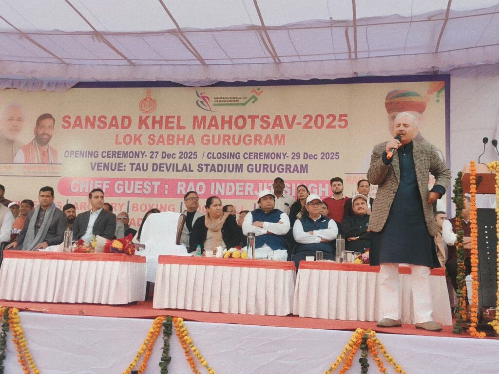 गुरुग्राम, 27 दिसंबर। युवाओं को अनुशासन, टीम भावना और नेतृत्व जैसे जीवन-मूल्यों से जोड़ते हुए खेल संस्कृति को जनआंदोलन बनाने की दिशा में एक महत्वपूर्ण पहल के रूप में आज गुरुग्राम में सांसद खेल महोत्सव का भव्य शुभारंभ हुआ। सेक्टर-38 स्थित ताऊ देवीलाल स्टेडियम में केंद्रीय मंत्री एवं स्थानीय सांसद राव इंद्रजीत सिंह ने इस तीन दिवसीय खेल महोत्सव का उद्घाटन किया।