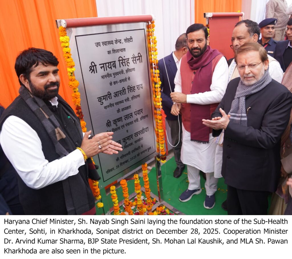 चंडीगढ़ 28 दिसम्बर – हरियाणा के मुख्यमंत्री श्री नायब सिंह सैनी ने कहा कि जो सशक्त, समृद्ध तथा आत्मनिर्भर प्रदेश के निर्माण में सहभागी बनना चाहता है, सरकार हर उस हरियाणवी के विकास के लिए सुशासन और पारदर्शिता के साथ खड़ी है। उन्होंने कहा कि प्रदेश के विकास में कोई कोर-कसर नहीं छोड़ी जाएगी।