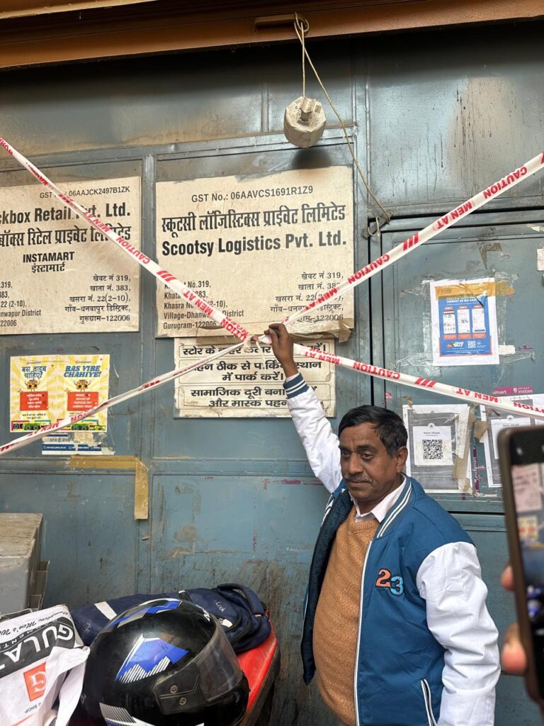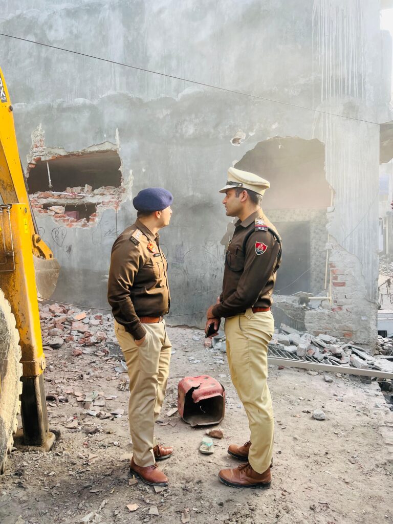 आज दिनांक 05.01.2026 को श्री अभिलक्ष जोशी HPS सहायक पुलिस आयुक्त पश्चिम, गुरुग्राम, निरीक्षक राजेश कुमार, प्रबन्धक पुलिस थाना राजेंद्रा पार्क, गुरुग्राम, की पुलिस टीम द्वारा डीटीपी अधिकारी श्री आर एस बाठ व उनकी टीम के सहयोग से अपराधी बनारसी द्वारा सरकारी जमीन पर अवैध कब्जा करके 50 वर्गगज में बनाए गए 05 मंजिला मकान को ध्वस्त (तोड़फोड़) किया गया तथा आरोपी सुनील उर्फ तोता द्वारा गाँव धनवापुर में इसके भाई के मकान को सील किया गया। गुरुग्राम पुलिस ने घटनास्थल पर मुस्तैद रहकर यह कार्यवाही पूर्णतः शांतिपूर्ण एवं कानून व्यवस्था बनाए रखते हुए संपन्न कराई।