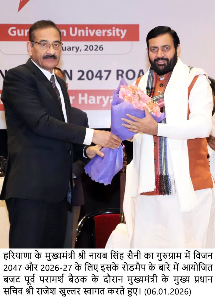 गुरुग्राम, 6 जनवरी – हरियाणा के मुख्यमंत्री श्री नायब सिंह सैनी ने कहा कि हरियाणा विकसित भारत-2047 का ग्रोथ इंजन साबित होगा। हरियाणा का योगदान देश हित मे उपयोगी रहे, इसके लिए योजनाबद्ध तरीके से कार्य किया जा रहा है। व्यापक परामर्श, गहन अध्य्यन व विशेषज्ञों की सहभागिता से हरियाणा विजन डॉक्यूमेंट-2047 बनाया है।