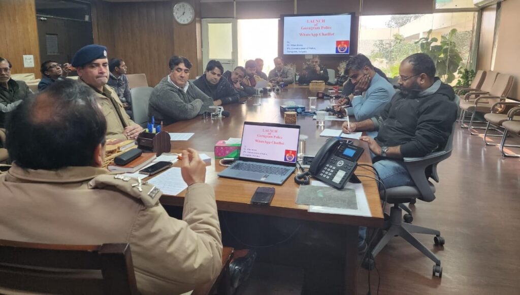 गुरुग्राम: 09 जनवरी 2026 – श्री विकास अरोड़ा IPS पुलिस आयुक्त, गुरुग्राम के निर्देशन में गुरुग्राम पुलिस द्वारा नागरिकों को त्वरित, पारदर्शी एवं तकनीक-आधारित पुलिस सेवाएँ उपलब्ध कराने की दिशा में आज दिनांक 09.01.2026 को एक ऐतिहासिक डिजिटल पहल करते हुए व्हाट्सएप चैटबॉट सेवा का शुभारंभ किया। यह चैटबॉट +91-95999-64777 नंबर पर 24×7 उपलब्ध रहेगा, जिसके माध्यम से आमजन को अब पुलिस से जुड़ी हर छोटी-छोटी आवश्यक सेवाओं एवं जानकारियों के लिए पुलिस थानों/कार्यालयों में जाने की आवश्यकता नही होगी।
