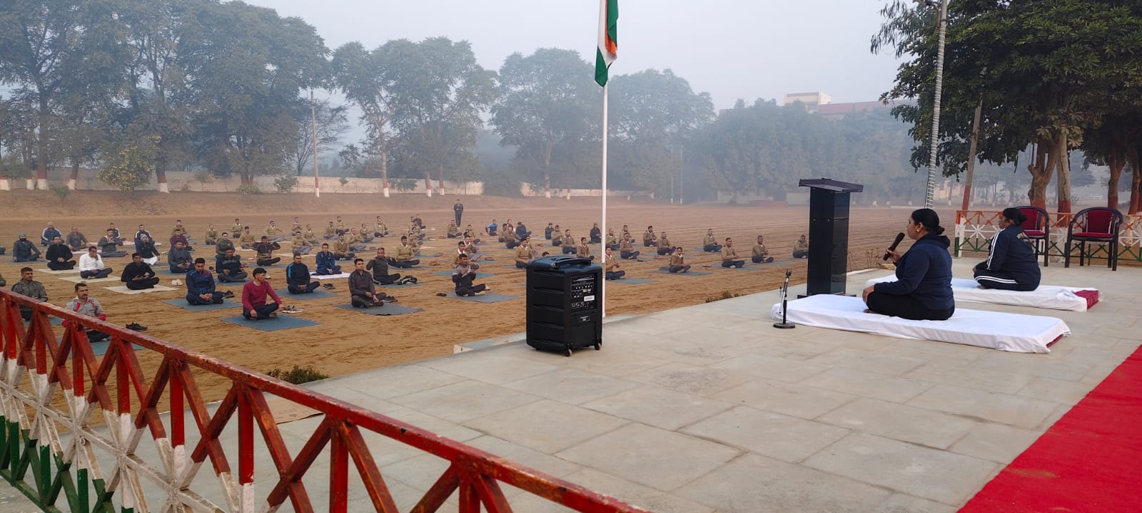 आयुष विभाग गुरुग्राम की योगाचार्य गीता सैनी और सोनू ने प्रशिक्षुओं को प्रमाणासन, हस्तोतानासन, हस्तपादासन, अश्वंसचालन आसन, दण्डासन, अष्टांग, मुजंगासन आदि के साथ सूर्य नमस्कार का अभ्यास कराया। उन्होंने बताया कि सूर्य नमस्कार सम्पूर्ण शरीर का व्यायाम है, यह स्वास्थ्य और पाचन तंत्र के लिए लाभकारी है और नियमित अभ्यास से चिंता व तनाव कम होता है।