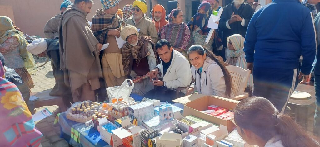 ग्राम वासियों को दी गई निःशुल्क दवाइयां व किया गया फ्री चेकअप