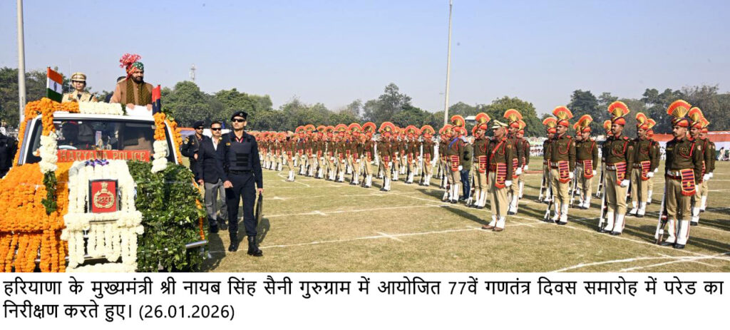 मुख्यमंत्री ने कहा कि गणतंत्र दिवस केवल अतीत को स्मरण करने का पर्व ही नहीं, बल्कि हमारे वर्तमान और भविष्य की उस सुनहरी तस्वीर को देखने का भी महापर्व है, जिसे हमने पिछले 11 वर्षों में मिलकर गढ़ा है। उन्होंने कहा कि दशकों तक सरकारें बदलती रहीं, लेकिन व्यवस्था नहीं बदली। व्यवस्था परिवर्तन के लक्ष्य के साथ गत विधानसभा चुनावों में सरकार ने अपने संकल्प-पत्र में 217 संकल्प लिए थे, जिनमें से 54 संकल्प मात्र एक वर्ष में पूरे कर लिए गए हैं, जबकि शेष 163 संकल्पों पर तेजी से कार्य जारी है। मुख्यमंत्री ने कहा कि आज प्रदेश की ‘बिना खर्ची–बिना पर्ची’ नौकरी नीति, ऑनलाइन रजिस्ट्री व्यवस्था, पारदर्शी ऑनलाइन ट्रांसफर पॉलिसी, पढ़ी-लिखी पंचायतें और अंत्योदय अभियान की चर्चा पूरे देश में हो रही है, जो नए हरियाणा की सशक्त और पारदर्शी तस्वीर प्रस्तुत करती है।