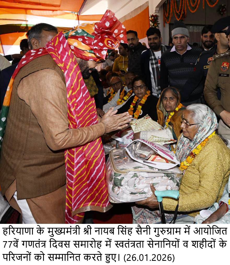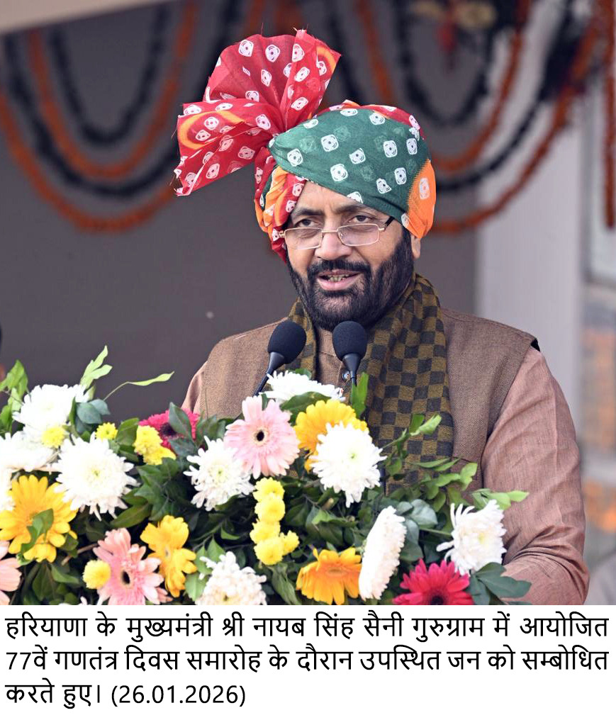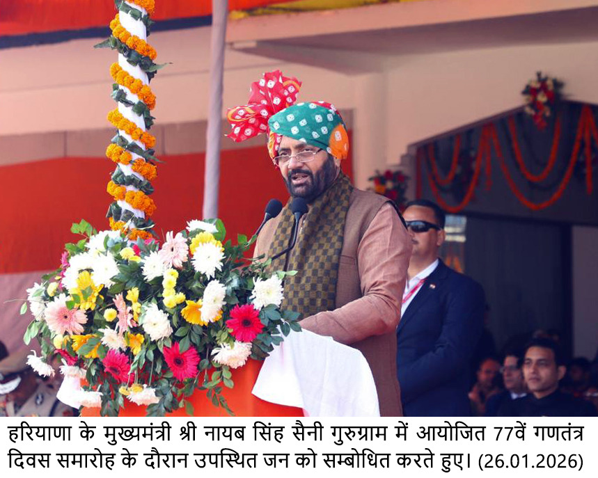 मुख्यमंत्री ने कहा कि उन्हें गुरु द्रोण की नगरी गुरुग्राम में गणतंत्र दिवस के अवसर पर राष्ट्रीय ध्वज फहराने का गौरव प्राप्त हुआ है। उन्होंने कहा कि गुरुग्राम वह शहर है, जहां गुरु द्रोणाचार्य की शिक्षा और आधुनिक तकनीक का मेल देखने को मिलता है। यहां 250 से अधिक फॉर्च्यून–500 कंपनियों की मौजूदगी और मजबूत स्टार्टअप इकोसिस्टम इस बात का प्रमाण हैं कि सही नीति और सशक्त नीयत के साथ असाधारण उपलब्धियां हासिल की जा सकती हैं। आईटी, बीपीओ, स्टार्टअप्स और ऑटोमोबाइल उद्योगों का प्रमुख केंद्र बने गुरुग्राम की यह सफलता यहां के नागरिकों की कड़ी मेहनत और सहभागिता का परिणाम है, जिसके लिए मुख्यमंत्री ने सभी गुरुग्रामवासियों को हार्दिक बधाई दी।