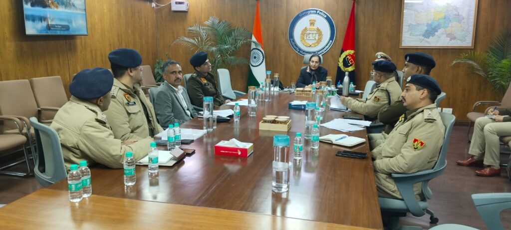पुलिस आयुक्त श्री विकास अरोड़ा (IPS) ने ADGP श्रीमती चारु बाली को गुरुग्राम जिले में की जा रही सुरक्षा व्यवस्थाओं, पुलिस बल की तैनाती तथा अपराध नियंत्रण के लिए उठाए गए कदमों की विस्तृत जानकारी दी।