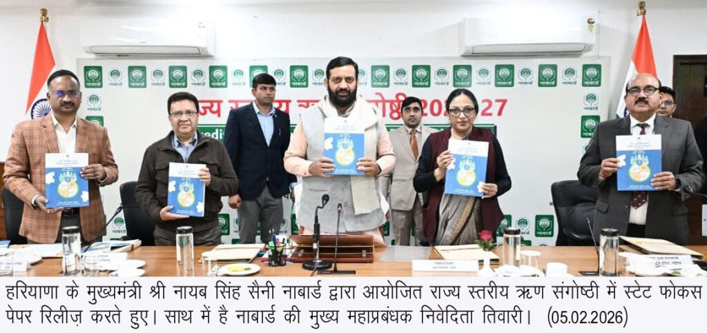 चंडीगढ़, 5 फरवरी— हरियाणा के मुख्यमंत्री श्री नायब सिंह सैनी ने नाबार्ड द्वारा आयोजित राज्य स्तरीय ऋण संगोष्ठी को संबोधित करते हुए कहा कि हरियाणा ने देश की खाद्य सुरक्षा में महत्वपूर्ण भूमिका निभाई है। बदलते समय के साथ कृषि और ग्रामीण अर्थव्यवस्था के सामने कई नई चुनौतियां भी आई है, जिनमें गिरता भूजल स्तर, मिट्टी की सेहत में गिरावट, छोटी जोत आकार, जलवायु परिवर्तन और उत्पादन लागत में वृद्धि प्रमुख हैं। इन चुनौतियों का समाधान परंपरागत तरीकों से नहीं, बल्कि नवाचार, तकनीक और संस्थागत वित्तीय सहयोग से ही संभव है।