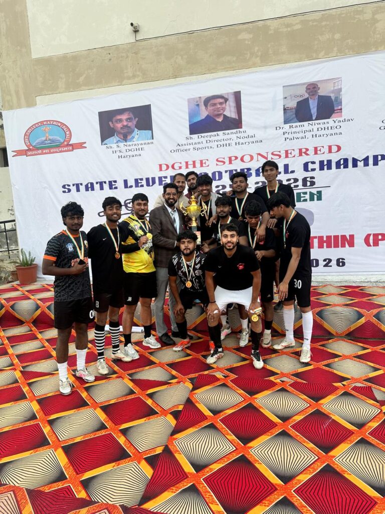 गुरुग्राम, 8 फरवरी-द्रोणाचार्य राजकीय महाविद्यालय (डीजीसी) गुरुग्राम की फुटबॉल टीम ने एक बार फिर शानदार प्रदर्शन करते हुए निदेशालय उच्च शिक्षा हरियाणा द्वारा राजकीय महाविद्यालय हथीन (पलवल) में आयोजित राज्य स्तरीय फुटबॉल चैंपियनशिप का खिताब अपने नाम कर लिया। फाइनल मुकाबले में टीम ने गत वर्ष की चैंपियन जीसी हिसार को 1–0 से हराकर जीत दर्ज की।