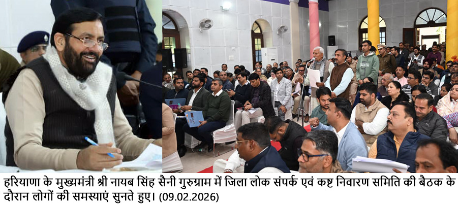 गुरुग्राम, 09 फरवरी। हरियाणा के मुख्यमंत्री श्री नायब सिंह सैनी ने कहा कि अधिकारी जनहित से जुड़े कार्यों को सर्वोच्च प्राथमिकता देते हुए पूरी संवेदनशीलता और जिम्मेदारी के साथ करें तथा किसी भी स्तर पर कोताही न बरती जाए। उन्होंने कहा कि गुरुग्राम के समग्र विकास और आमजन की समस्याओं के समाधान को लेकर सरकार पूरी तरह प्रतिबद्ध है। जिले से जुड़ी प्रत्येक समस्या पर गंभीरता से विचार किया जा रहा है और उनका शीघ्र एवं प्रभावी समाधान सुनिश्चित किया जा रहा है। सरकार निरंतर जनसमस्याओं की समीक्षा कर रही है, ताकि लोगों को समय पर राहत मिल सके और विकास कार्यों में गति बनी रहे।