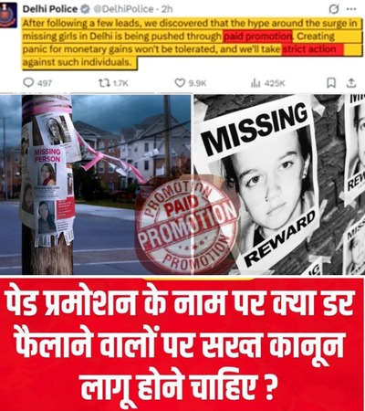 भावनानी ने मिसिंग पर्सन्स को लेकर फैल रही चर्चाओं का उल्लेख करते हुए कहा कि कुछ समय पहले मुंबई में भी इस तरह की अफवाहें फैली थीं, लेकिन पुलिस के तथ्यों और चेतावनियों के बाद स्थिति स्पष्ट हो गई। अब दिल्ली में लापता व्यक्तियों के आंकड़ों को लेकर फिर भय का माहौल बन रहा है। एक रिपोर्ट में 2026 के पहले 15 दिनों में 800 से अधिक लोगों के लापता होने का दावा किया गया, हालांकि यह स्पष्ट नहीं था कि इनमें से कितने मामले पारिवारिक विवाद, स्वेच्छा से घर छोड़ने या गलत रिपोर्टिंग से जुड़े थे।