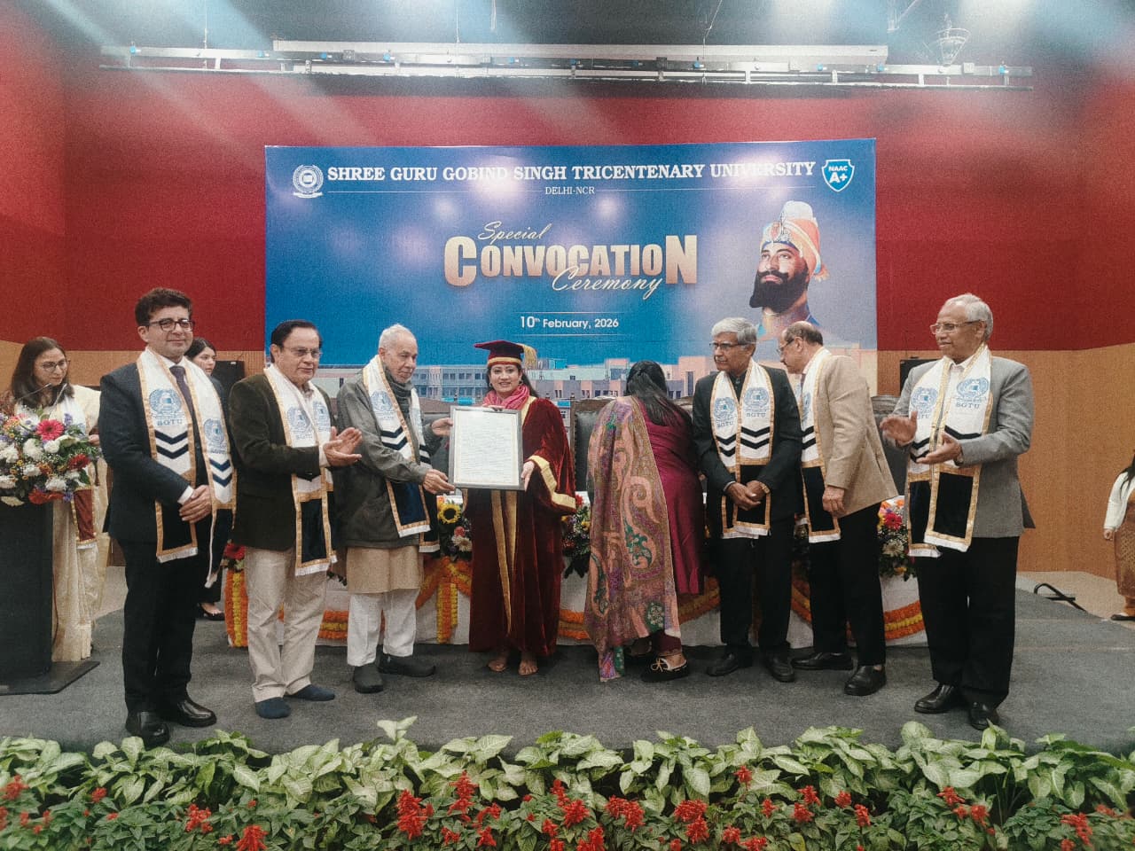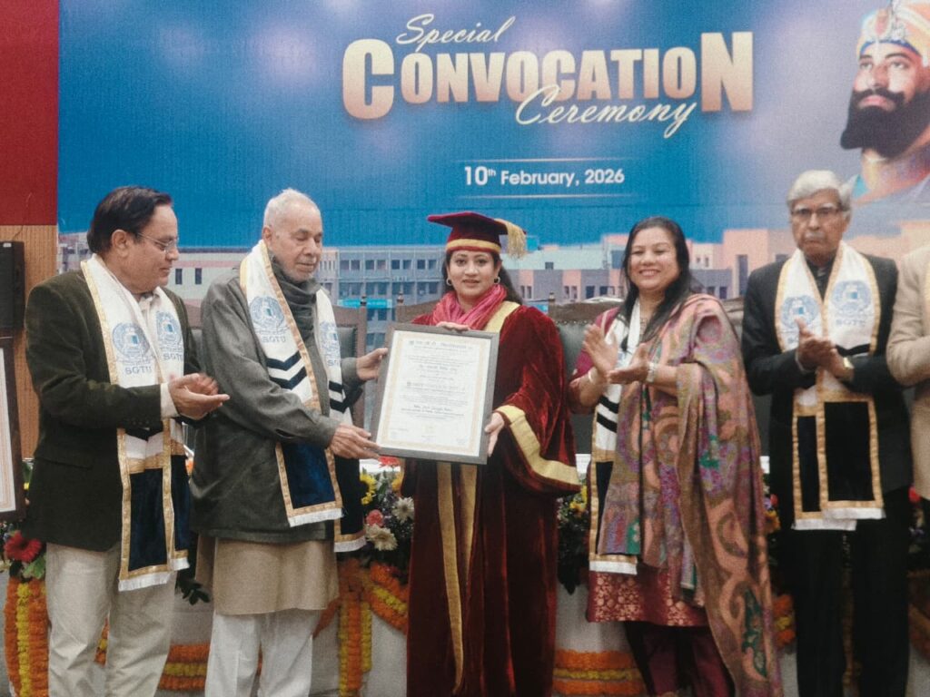 गुरुग्राम,10 फरवरी- गुरुग्राम स्थित श्री गुरु गोबिंद सिंह ट्राइसेंटेनरी (एसजीटी) विश्वविद्यालय में आयोजित विशेष दीक्षांत समारोह में हरियाणा की स्वास्थ्य मंत्री आरती सिंह राव तथा प्रख्यात समाजसेवी पद्मश्री बिमल कुमार जैन को उनकी उल्लेखनीय सेवाओं के लिए डॉक्टर ऑफ लेटर्स (मानद) उपाधि से सम्मानित किया गया। यह सम्मान विश्वविद्यालय की शैक्षणिक परिषद, प्रबंधन मंडल, शासी निकाय एवं कुलाधिपति की अनुशंसा पर प्रदान किया गया।
