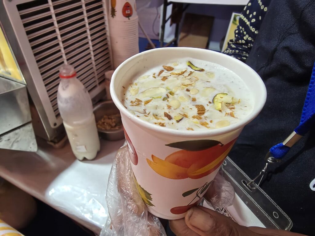 शिवरात्रि स्पेशल में फूड कोर्ट की स्टाल नंबर 28 पर स्पेशल ठंडाई तैयार की जा रही है जिसे एनर्जी रिचार्ज ड्रिंक कहते हैं क्योंकि इसमें केसर, बादाम, पिस्ता, खसखस, शंखपुष्पी, काली मिर्च, सौंफ को दूध में डालकर बनाया जाता है। जिसे पीते ही दिमाग भी शांत होता है और शरीर में एनर्जी आती है।