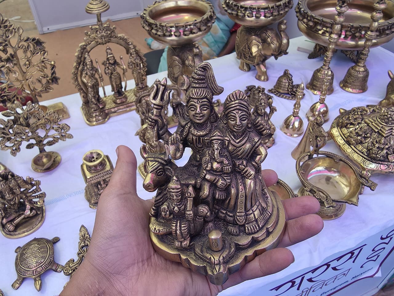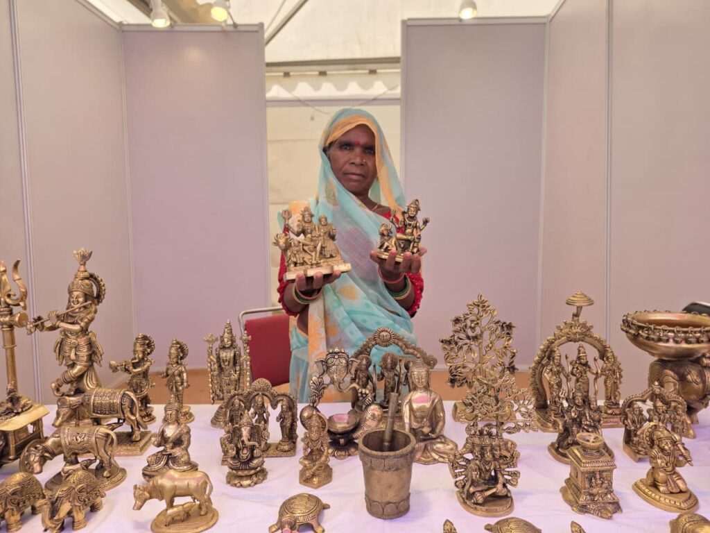 मध्यप्रदेश पवेलियन में स्टाल नंबर 229 की लड़कों बाई ने शिवजी और पार्वती की पीतल की ऐसी मूर्तियां बनाईं हैं जो लोगों का विशेषकर ध्यान आकर्षित कर रही हैं। लड़कों बाई बताती हैं कि ये मूर्तियां बनाना आसान काम नहीं है पहले पीतल को सांचे में डाला जाता है उसके बाद मूर्ति को बनने में 5 दिन का समय लगता है। उन्हें यह काम करते हुए आज 15 से 20 साल हो गए हैं।