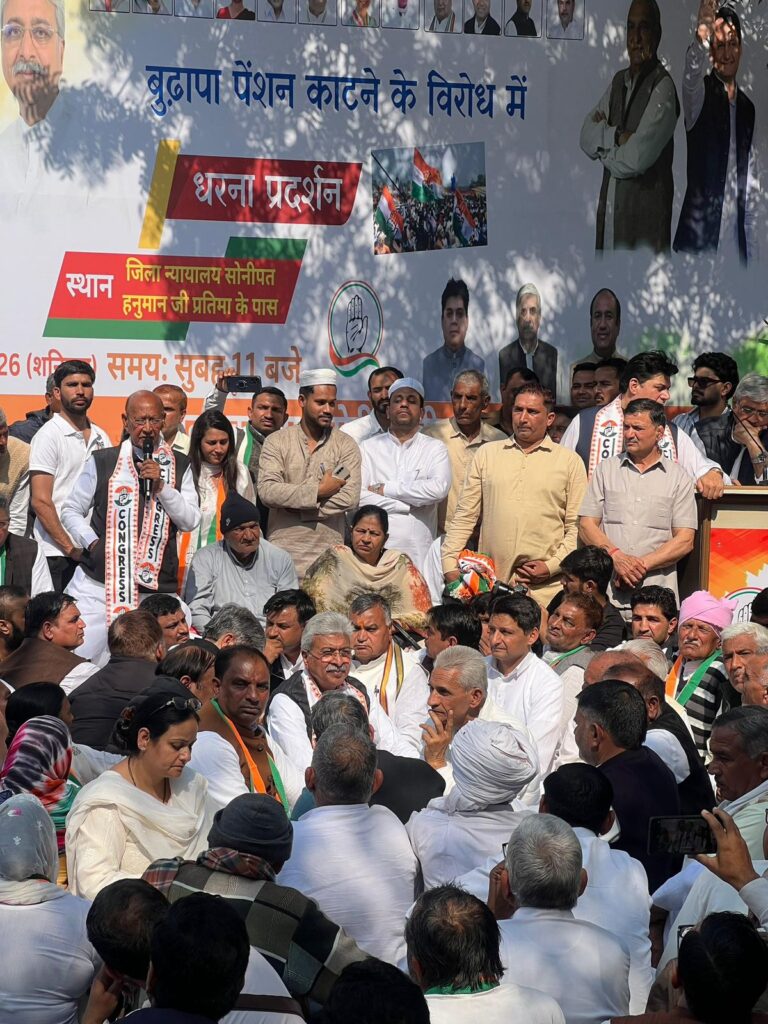 सोनीपत/चंडीगढ़, 14 फरवरी। हरियाणा प्रदेश कांग्रेस कमेटी ने प्रदेश अध्यक्ष राव नरेंद्र सिंह के नेतृत्व में सोनीपत में राज्य सरकार की जनविरोधी नीतियों के खिलाफ विशाल धरना-प्रदर्शन किया। कार्यक्रम में सांसद दीपेंद्र हुड्डा, पूर्व प्रदेश अध्यक्ष धर्मपाल मलिक तथा सांसद सतपाल ब्रह्मचारी विशेष रूप से उपस्थित रहे और जनसमूह को संबोधित किया।