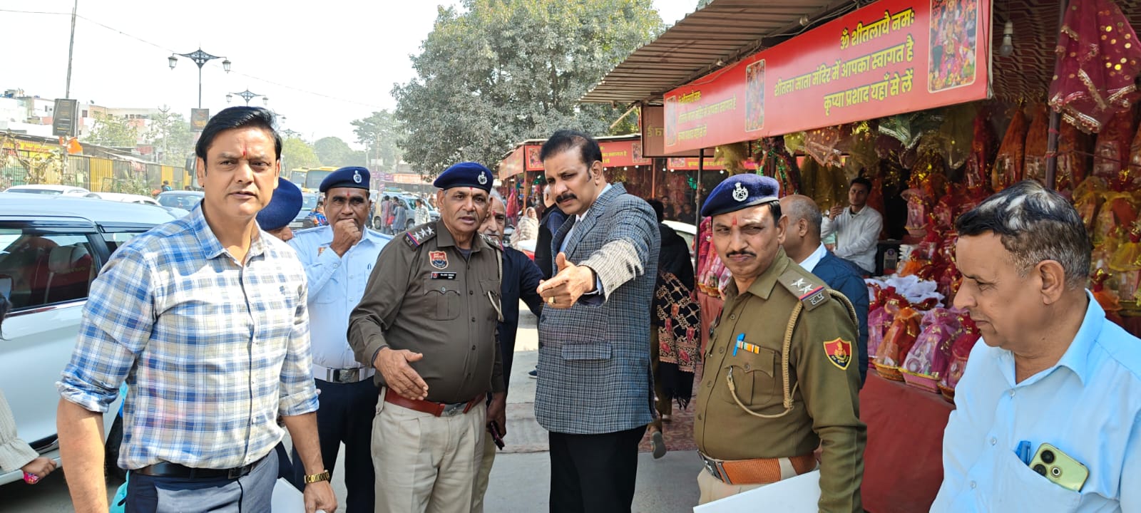 जिला परिषद के सीईओ सुमित कुमार ने मंदिर परिसर तथा मुख्य प्रवेश द्वार के बाहर यातायात व्यवस्था का निरीक्षण किया। उन्होंने ट्रैफिक पुलिस अधिकारियों को निर्देश दिए कि मंदिर के बाहर फुटपाथ क्षेत्र में कांवड़ यात्रा की तर्ज पर रस्सियों और मजबूत बैरिकेडिंग की व्यवस्था की जाए, ताकि श्रद्धालुओं की आवाजाही सुव्यवस्थित ढंग से हो सके। उन्होंने पैदल श्रद्धालुओं और वाहनों के लिए अलग-अलग मार्ग निर्धारित करने, दिशा-सूचक बोर्ड लगाने तथा भीड़ वाले स्थानों पर अतिरिक्त पुलिस बल तैनात करने के निर्देश भी दिए। इसके साथ ही उन्होंने आमजन से आह्वान किया कि वे मेले के दौरान अन्य वैकल्पिक मार्गों का प्रयोग करें ताकि मेले में आने वाले श्रद्धालुओं तथा शहरवासियों की किसी प्रकार की असुविधा ना हो।