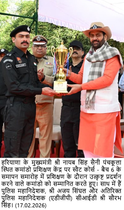 चंडीगढ़, 17 फरवरी- हरियाणा के मुख्यमंत्री श्री नायब सिंह सैनी ने कहा कि हमारा संकल्प पुलिस बल को आधुनिक संसाधनों, बेहतर अवसंरचना और अत्याधुनिक प्रशिक्षण से सशक्त बनाकर हरियाणा की कानून-व्यवस्था को देश में एक मॉडल के रूप में स्थापित करना है। उन्होंने कहा कि पुलिस बल के आधुनिकरण पर 300 करोड़ रुपये की राशि खर्च की जा रही है और 5500 नए पुलिस जवानों की भर्ती प्रक्रिया चल रही है।