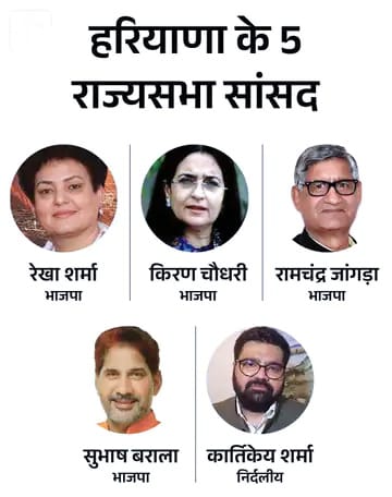 हरियाणा की 2 राज्यसभा सीटों के लिए 16 मार्च 2026 को चुनाव होगा। इसके लिए उम्मीदवारों को 5 मार्च तक नामांकन दाखिल करना होगा। भाजपा के 2 राज्यसभा सांसद किरण चौधरी और रामचंद्र जांगड़ा का कार्यकाल 9 अप्रैल 2026 तक है। अभी ये दोनों सीटें भाजपा के पास हैं।