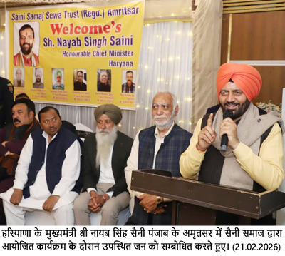 चंडीगढ़ , 21 फरवरी- हरियाणा के मुख्यमंत्री श्री नायब सिंह सैनी अमृतसर में सैनी समाज ट्रस्ट द्वारा आयोजित मिलन समारोह में बतौर मुख्य अतिथि शामिल हुए। इस अवसर पर उन्होंने ट्रस्ट द्वारा तैयार की गई वेबसाइट का शुभारंभ किया। उन्होंने बताया कि इस वेबसाइट के माध्यम से समाज की गतिविधियों के साथ-साथ अन्य महत्वपूर्ण जानकारियां भी साझा की जाएंगी।