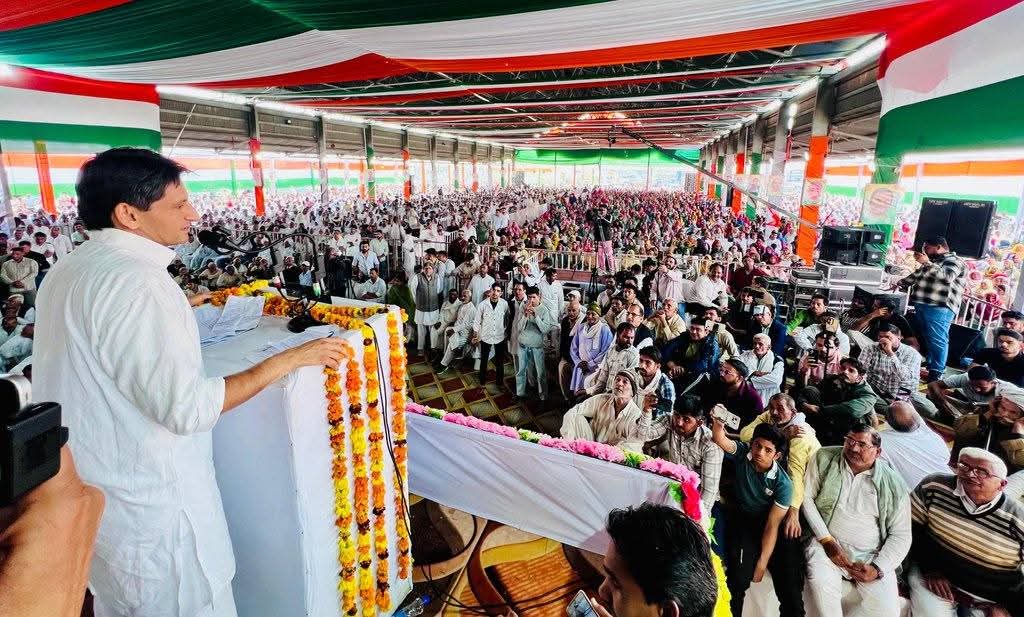 दीपेन्द्र हुड्डा ने कहा चुनाव के बाद 3100 का भाव देने की बात कहने वाली बीजेपी सरकार में धान, बाजरा, नरमा पर भी एमएसपी नहीं मिली और सीएम 24 फसलों को MSP पर खरीदने की बात करते हैं। भाजपा को जब वोट मिल गया तो वह किसान, नौजवान, गरीब, माताओं-बहनों और बड़े बुजुर्गों को भी भूल गयी। बीजेपी ने चुनाव के समय हरियाणा की सभी 85 लाख महिलाओं को लाडो लक्ष्मी योजना में 2100 रुपए देने का वाला किया लेकिन चुनाव के बाद 85 लाख में से केवल चंद लाख महिलाओं को ही 2100 रुपया देने की बात करने लगी। भाजपा सरकार बड़े-बुजुर्गों को भी भूल गयी और हर गांव, हर घर में बुढ़ापा पेंशन काटने लगी। जब हमने सोनीपत में धरना रखा तो डरी भाजपा सरकार ने पेंशन काटने के फैसले को स्थगित कर दिया। बारिश में जलभराव हुआ तो केवल 6 हजार रुपये प्रति एकड़ मुआवजा घोषित हुआ और उसमें भी साढ़े पांच लाख किसानों का रजिस्ट्रेशन कराकर सिर्फ 53 हजार को ही मुआवजा दिया गया। जबकि कांग्रेस सरकार के समय फसल खराबे पर पंजाब में जितना प्रति एकड़ मुआवजा मिलता था, उसका डबल मुआवजा हरियाणा की हुड्डा सरकार देती थी।