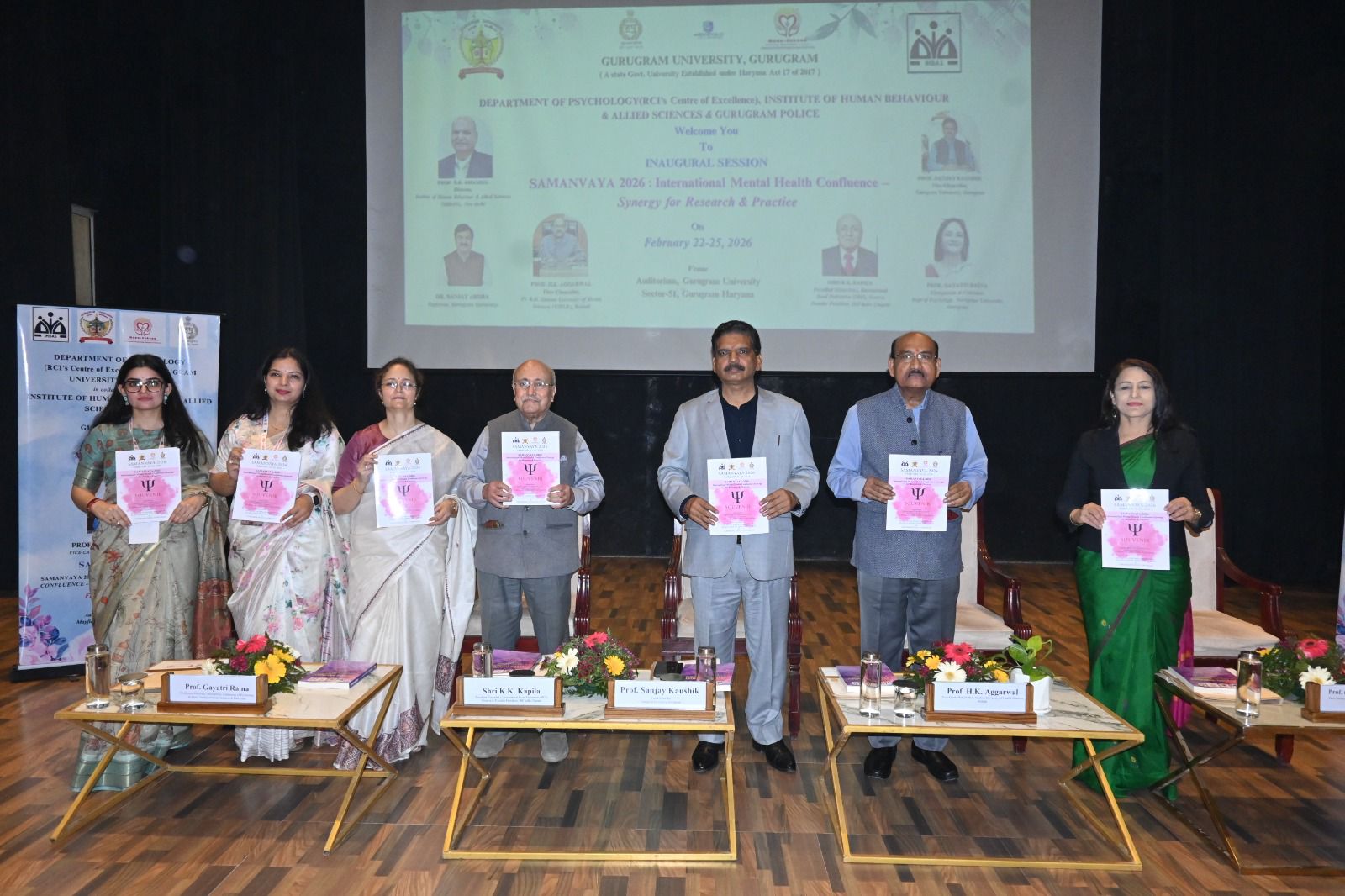 गुरुग्राम, 23 फरवरी। गुरुग्राम यूनिवर्सिटी में सोमवार को मनोविज्ञान विभाग द्वारा समन्वय 2026: अंतरराष्ट्रीय मानसिक स्वास्थ्य संगोष्ठी – अनुसंधान और व्यवहार के लिए समन्वय” विषय पर अंतरराष्ट्रीय सम्मेलन का भव्य शुभारम्भ किया गया। कुलगुरु डॉ. संजय कौशिक की अध्यक्षता में यह सम्मेलन आईएचबीएसी तथा गुरुग्राम पुलिस के सहयोग से