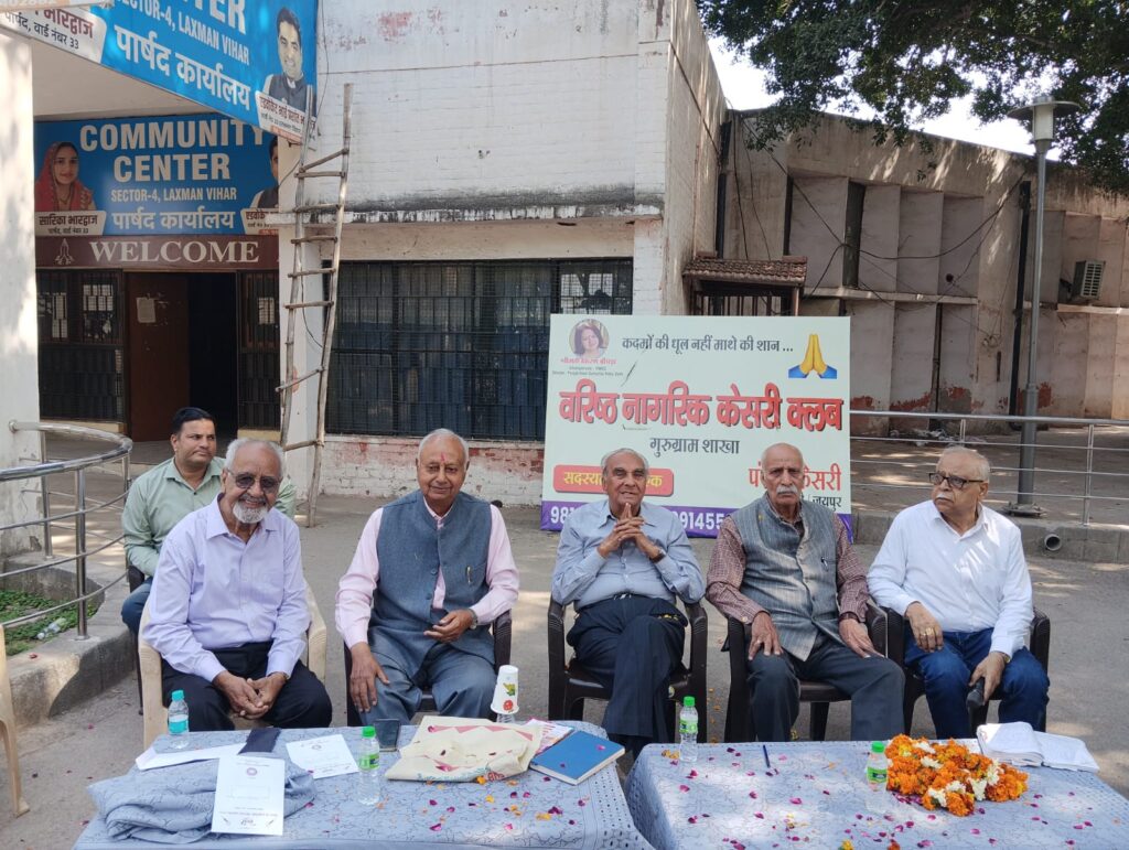 गुरुग्राम। वरिष्ठ नागरिक केसरी क्लब, गुरुग्राम शाखा द्वारा माह के चौथे शनिवार को सैक्टर-4 स्थित सामुदायिक भवन में सांस्कृतिक कार्यक्रम का भव्य आयोजन किया गया। कार्यक्रम की अध्यक्षता संस्था के प्रधान एवं फोरबा के चेयरमैन धर्मसागर ने की। आयोजन में वरिष्ठ नागरिकों ने फूलों की होली खेलकर आपसी प्रेम और सौहार्द का संदेश दिया।