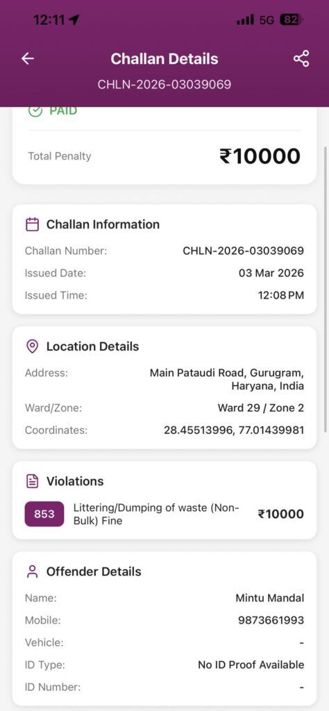 गुरुग्राम, 3 मार्च। शहर में बायोमेडिकल वेस्ट के अनुचित निस्तारण को लेकर नगर निगम गुरुग्राम ने सख्त रुख अपनाते हुए पटौदी रोड स्थित देवराज क्लीनिक पर 10,000 रुपए का जुर्माना लगाकर मौके पर ही उसकी वसूली भी की है। सार्वजनिक स्थान पर मेडिकल वेस्ट फेंकने की शिकायत मिलने के बाद निगम टीम ने मौके पर पहुंचकर निरीक्षण किया और नियमों के उल्लंघन की पुष्टि होने पर तत्काल कार्रवाई की।