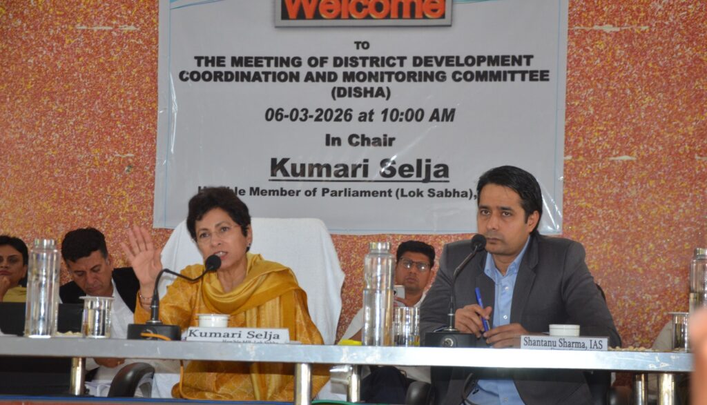 सिरसा, 6 मार्च। सिरसा की सांसद, पूर्व कैबिनेट मंत्री एवं कांग्रेस की राष्ट्रीय महासचिव कुमारी सैलजा ने शुक्रवार को पंचायत भवन में आयोजित ‘दिशा’ बैठक के दौरान शहर की सफाई व्यवस्था और सिविल अस्पताल के सामने स्थित ग्रीन बेल्ट को डंपिंग प्वाइंट में तब्दील किए जाने पर अधिकारियों पर कड़ी नाराजगी जताई। उन्होंने अधिकारियों को कड़े शब्दों में चेतावनी देते हुए कहा कि यदि ग्रीन बेल्ट में कचरा डालना ही है तो फिर पंचायत भवन के पार्क में ही डंपिंग प्वाइंट बना लिया जाए।