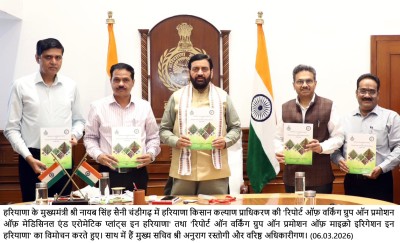 – मुख्यमंत्री ने हरियाणा किसान कल्याण प्राधिकरण की “रिपोर्ट ऑफ़ वर्किंग ग्रुप ऑन प्रमोशन ऑफ़ मेडिसिनल एंड एरोमेटिक प्लांट्स इन हरियाणा” तथा ” रिपोर्ट ऑन वर्किंग ग्रुप ऑन प्रमोशन ऑफ़ माइक्रो इरिगेशन इन हरियाणा” का विमोचन किया
