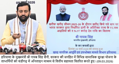 चंडीगढ़ , 9 मार्च – हरियाणा के मुख्यमंत्री श्री नायब सिंह सैनी ने प्रदेश के लाखों लाभार्थियों को विभिन्न योजनाओं के तहत बटन दबाकर एक क्लिक से करीब 1884 करोड़ रुपए की राशि डीबीटी के माध्यम से भेजी।