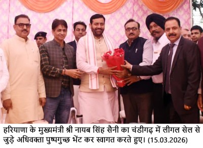 चंडीगढ़, 15 मार्च – हरियाणा के मुख्यमंत्री श्री नायब सिंह सैनी ने कहा कि वकालत केवल आजीविका का माध्यम नहीं, बल्कि न्याय, मानवता और जनसेवा का सशक्त दायित्व है। उन्होंने कहा कि वकील लोकतंत्र की न्यायिक व्यवस्था के महत्वपूर्ण स्तंभ हैं, जो न केवल समाज के कमजोर, वंचित और जरूरतमंद वर्गों को न्याय दिलाने में अहम भूमिका निभाते हैं, बल्कि सामाजिक परिवर्तन, नैतिक मूल्यों की स्थापना और राष्ट्र निर्माण में भी अग्रणी योगदान देते हैं।
