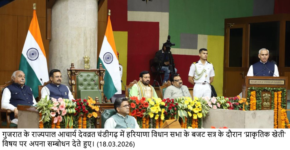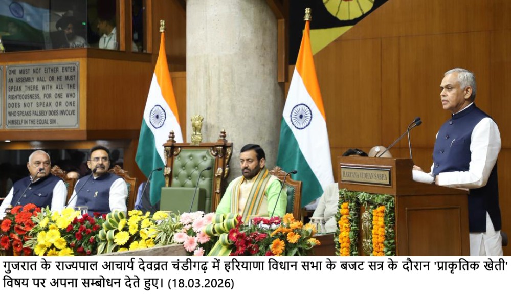 चंडीगढ़, 18 मार्च — गुजरात के राज्यपाल आचार्य देवव्रत ने विधानसभा के बजट सत्र के दौरान प्राकृतिक खेती पर विशेष व्याख्यान देते हुए कहा कि यह विषय केवल कृषि तक सीमित नहीं है, बल्कि मानव स्वास्थ्य, पर्यावरण संरक्षण और आने वाली पीढ़ियों के भविष्य से भी जुड़ा हुआ है। उन्होंने सभी दलों के जनप्रतिनिधियों का आभार व्यक्त करते हुए कहा कि इस महत्वपूर्ण विषय को दलगत राजनीति से ऊपर उठकर मानव कल्याण के दृष्टिकोण से सदन में उठाया गया।
