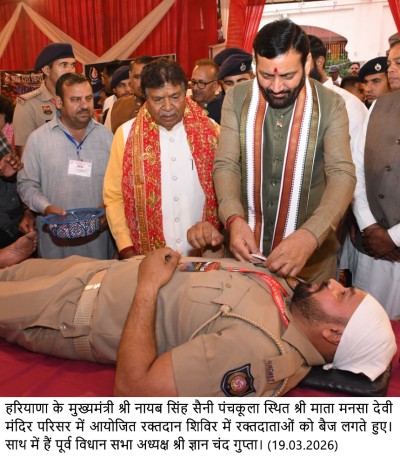 इसके उपरांत मुख्यमंत्री ने मंदिर परिसर में श्री माता मनसा देवी पूजा स्थल बोर्ड, जिला रेडक्रॉस सोसाइटी पंचकूला एवं श्री शिव कांवड़ महासंघ चैरिटेबल ट्रस्ट पंचकूला द्वारा आयोजित रक्तदान जागरूकता शिविर में पहुंचकर रक्तदाताओं को बैज लगाकर उनका उत्साहवर्धन किया।