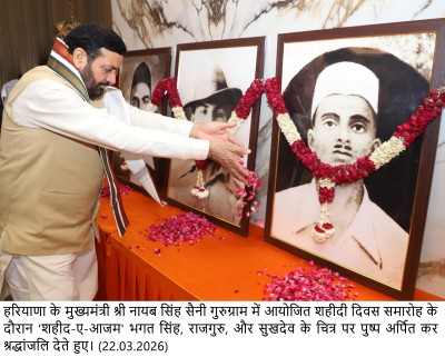 मुख्यमंत्री रविवार को गुरुग्राम में होम डेवलपर्स एसोसिएशन द्वारा शहीदी दिवस समारोह में छत्तीसगढ़ के दंतेवाड़ा में सीआरपीएफ के शहीद जवानों के सम्मान में आयोजित समारोह को संबोधित कर रहे थे। मुख्यमंत्री ने लेजरवली पार्क में शहीद भगत सिंह की प्रतिमा लगाने की घोषणा की। इस दौरान शहीद भगत सिंह, राजगुरु और सुखदेव के चित्र पर पुष्प अर्पित कर श्रद्धांजलि दी। उन्होंने सीआरपीएफ जवानों के कल्याण स्वरूप सीआरपीएफ के डीआईजी परम् शिवम को 38.25 लाख रुपये की राशि का चैक प्रदान किया। गुरुग्राम होम डेवलपर्स द्वारा एकत्रित यह धनराशि सीआरपीएफ के शहीद जवानों के परिवार कल्याण में इस्तेमाल की जाएगी।