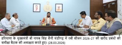 चंडीगढ़ , 28 मार्च – हरियाणा के मुख्यमंत्री श्री नायब सिंह सैनी ने अधिकारियों को निर्देश दिए कि रबी खरीद सीज़न वर्ष 2026-27 के दौरान अपनी फ़सल बेचने के लिए मंडियों में आने वाले किसानों को किसी प्रकार की असुविधा नहीं होनी चाहिए।